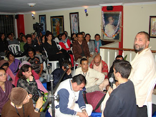 A mi me da mucho gusto dedicarme a compartir con los colombianos lo bello de lo que es el Bhagavadgita (libro sagrado) y la filosofía védica para que se animen de ser vegetarianos y animarse a la no intoxicación, como lo hago en todo el mundo también.I´m really happy to dedicate myself to share with Colombian people the beauty of what the Bhagavad Gita (holy book) and the Vedic philosophy is, to enthusiasm all to be vegetarians and to encourage the non-intoxication, as i do in all the world too.